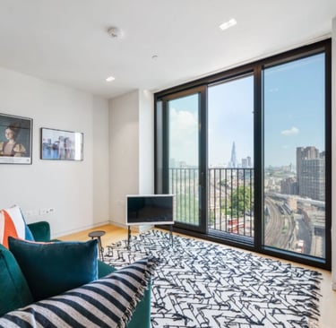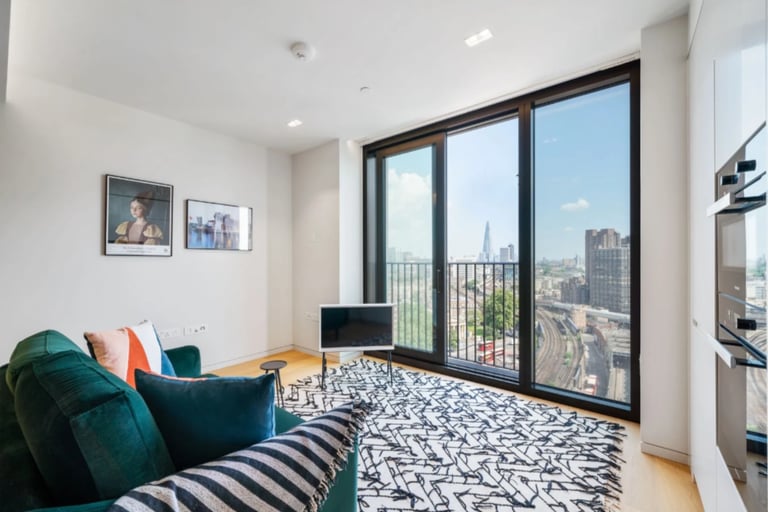 Positioned on the 15th floor of the prestigious Southbank Place development, this one-bedroom apartment enjoys far-reaching views across the capital’s skyline, with floor-to-ceiling windows and Juliet balconies framing iconic the London skyline